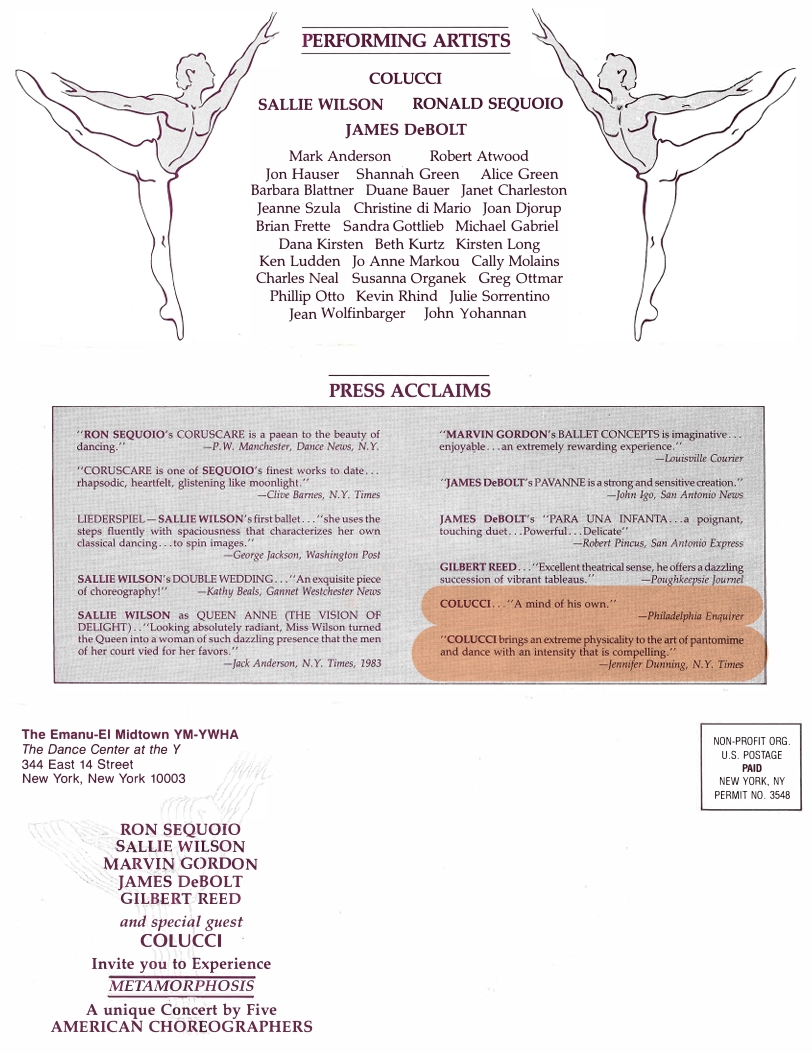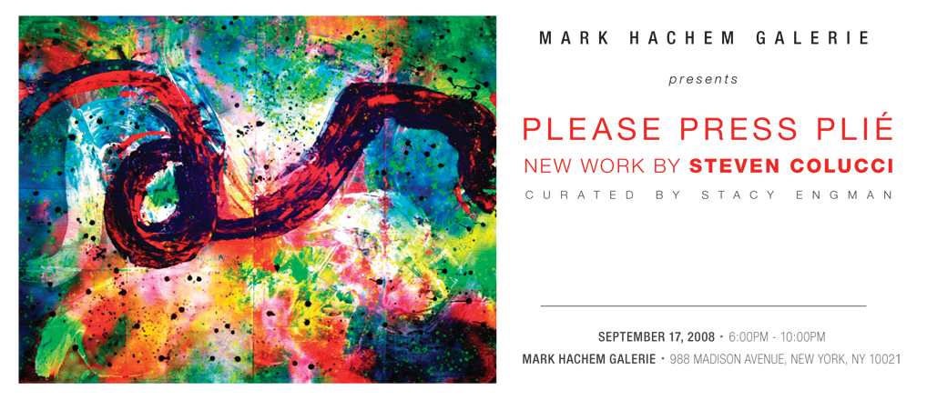 It is evident in Steven Colucci’s paintings that he has established a uniquely distinctive pictorial vocabulary; a strong allusion to -- or moreso an extension of -- his performance works. Colucci’s paintings depict a sort of kinetic spectrum, or as he refers to them “a technical expression of physicality and movement”. Whereas the French performance and visual artist Yves Klein used the human body as a “paint brush” to demarcate his paintings and thereby signify a residue of performance, Colucci’s utilization of nonsensical numbers and number sequences taken from dance scores, as well as heat-induced image abstraction depicting traces of movement likewise inform his vocabulary. In the strand of the choreographed, yet incorporating moments of chance, Colucci’s paintings represent an overarching structure; a rhythm of being and state, yet detail erratic moments -- moments that denote a certain frailty -- the edge of human stamina. Colucci’s paintings dually represent a form of gestural abstraction -- and also the reverse of this -- a unique anthropomorphization of varying states of movement -- that sometimes present as a temperature induced color field, at others are juxtapositions of movement and depictions of physical gestural images themselves. Colucci’s use of vernacular and found materials such as cardboard evoke his mastery of set design, and also reference a sort of collective experience of urbanity and the ephemeral. Such contradictions seem to permeate not only Steven Colucci’s artwork, but also are reflected in his person -- one who grew up in New York’s Bronx during a zeitgeist moment in visual and performing arts in the 1960s -- one who shifts with ease from happenings and experiments in New York City, to his meticulously choreographed megaproductions at Lincoln Center or starring in the Paris ballet, to his elaborately constructed paintings. Colucci is an artist that transcends both performance and the picture plane.